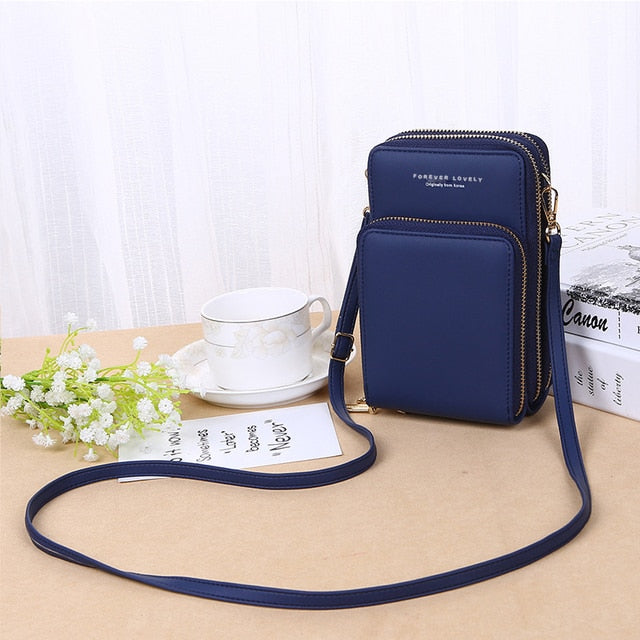 3 bolsos com zíper, 5 compartimentos, 6 slots de cartão, 1 alça e 1 porta documentos para tudo que você precisa (telefone, cartões de crédito, documentos, medicamentos, perfume)